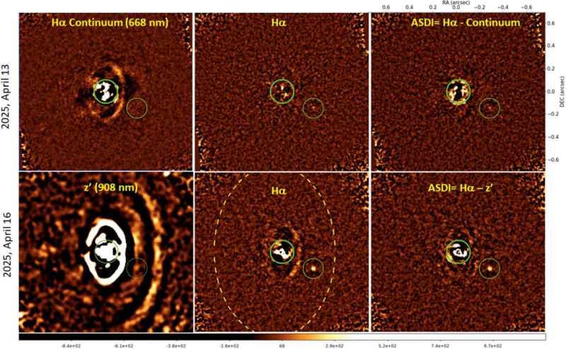 “As planets form and grow, they suck in hydrogen gas from their surroundings, and as that gas crashes down on them like a giant waterfall coming from outer space and hits the surface, it creates extremely hot plasma, which in turn, emits this particular H-alpha light signature,” Close explained. “MagAO-X is specially designed to look for hydrogen gas falling onto young protoplanets, and that’s how we can detect them.”