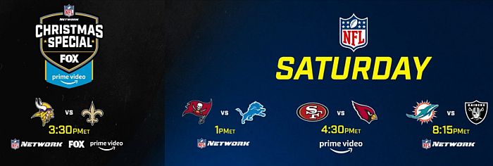 A special Christmas Day edition of the NFL on FOX, NFL Network and Amazon Prime Video airs Friday, December 25 at 4:30 p.m. ET with quarterback Drew Brees and the New Orleans Saints hosting quarterback Kirk Cousins and the Minnesota Vikings.